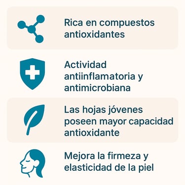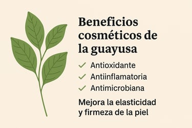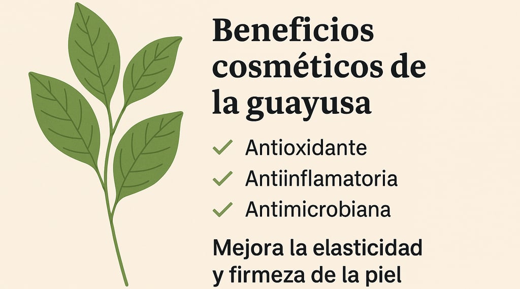 Estudios recientes han demostrado que las hojas de guayusa son ricas en polifenoles, carotenoides, cafeína y compuestos antioxidantes (Ocampo, 2025). Estas moléculas ayudan a combatir el estrés oxidativo, una de las principales causas del envejecimiento cutáneo. Lo más interesante es que las hojas jóvenes presentan una mayor concentración de estos compuestos, lo cual incrementa su efectividad en biocosméticos fermentados y postbióticas.